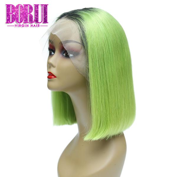 Brazilian Human Hair Straight Short Ombre 1b Grass Green Bob Wig