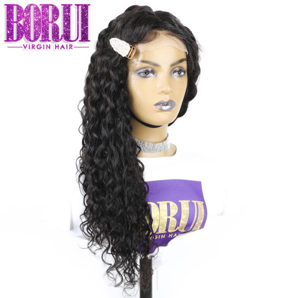 Handmade Indian Curly Human Hair Lace Closure Wig Water Wave Pre-plucked